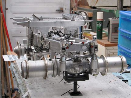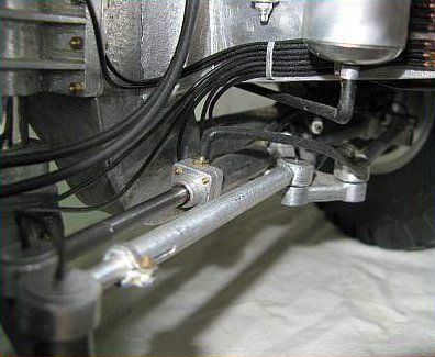 - a 12-volt automobile heating fan electric motor drives the rear axle via a telescopic shaft between two cardan joints.