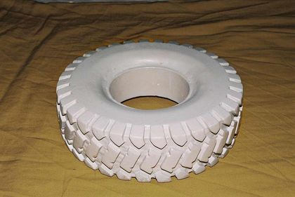 1) plaster cast of a drilled drum, all at dimensions slightly higher than the final tire.